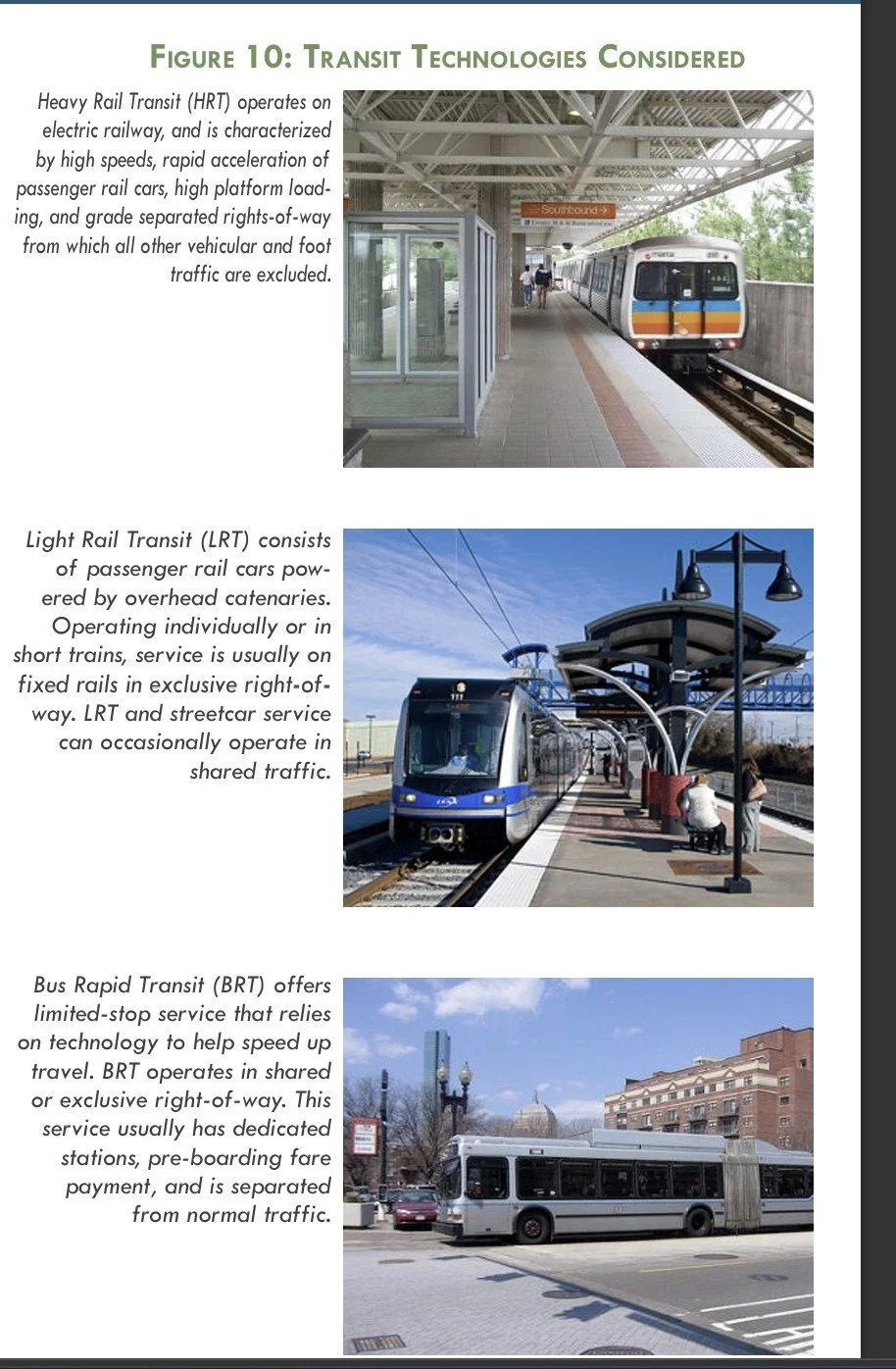 Comparisons of different options for a rapid transit route on the I-20 corridor