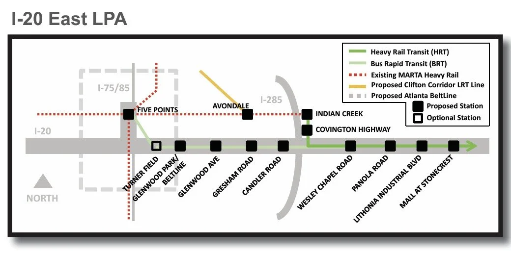 Proposed stations for a MARTA rail expansion east into DeKalb County